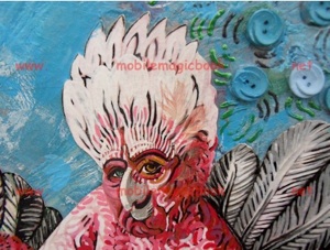 'I'M NOT A BUDGIE' - SELF PORTRAIT MIXED MEDIA - PAINT AND COLLAGE DETAIL