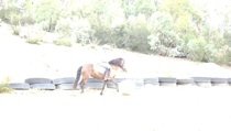 Here are Magic and Alex playing Horse-Ball. It is the first time Magic has ever met a giant rubber ball, but you will see what a clever little pony she is. She very quickly gets used to the ball and decides to take control. Magic looks brown here because she was just about to lose her faded summer coat,